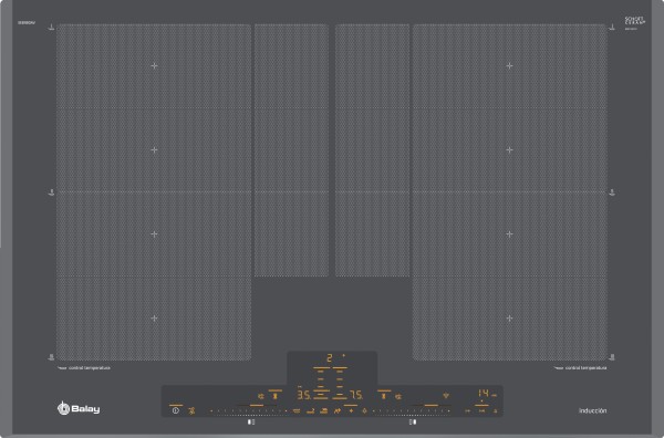 Podrás controlar cada zona de forma independiente, ya que cada una cuenta con su propio control deslizante. Además, solo se iluminan las funciones seleccionables en cada momento, lo cual te facilitará aún más su manejo. Por si fuera poco, su estética y la iluminación en ámbar se coordinan perfectamente con los controles de hornos, microondas y campanas Balay. Para que en tu cocina se respire armonía y comodidad.