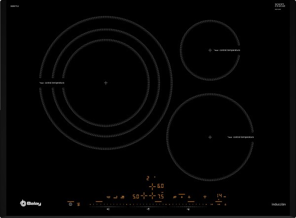 Podrás controlar cada zona de forma independiente, ya que cada una cuenta con su propio control deslizante. Además, solo se iluminan las funciones seleccionables en cada momento, lo cual te facilitará aún más su manejo. Por si fuera poco, su estética y la iluminación en ámbar se coordinan perfectamente con los controles de hornos, microondas y campanas Balay. Para que en tu cocina se respire armonía y comodidad.