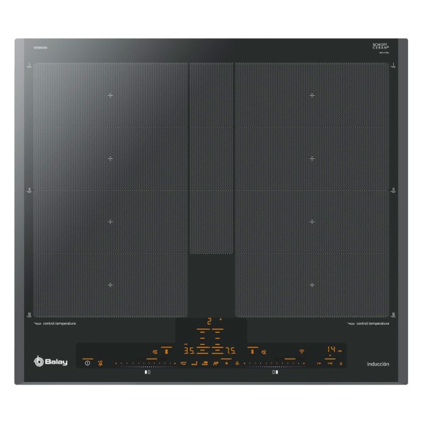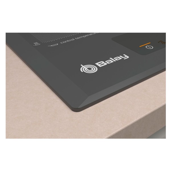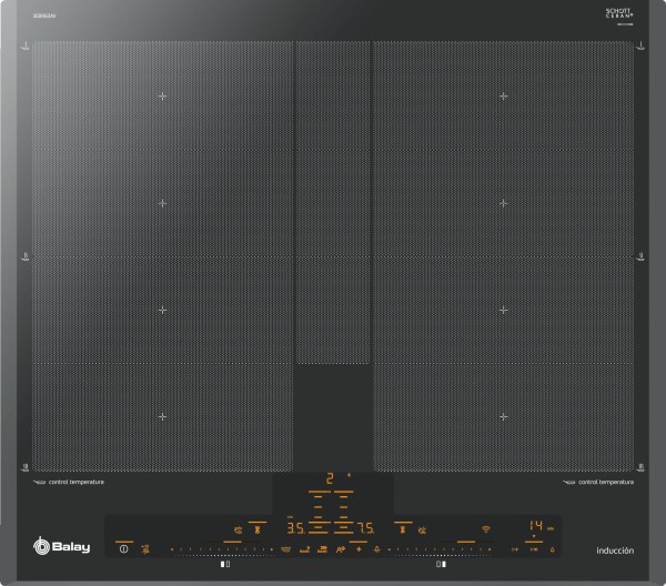 Podrás controlar cada zona de forma independiente, ya que cada una cuenta con su propio control deslizante. Además, solo se iluminan las funciones seleccionables en cada momento, lo cual te facilitará aún más su manejo. Por si fuera poco, su estética y la iluminación en ámbar se coordinan perfectamente con los controles de hornos, microondas y campanas Balay. Para que en tu cocina se respire armonía y comodidad.