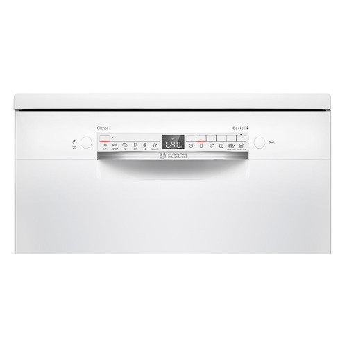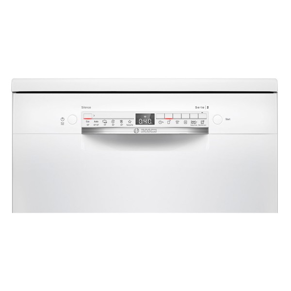 - Diseño: Lavavajillas de 60 cm de libre instalación, terminación en blanco, con display luminoso y botones para un control detallado del ciclo de lavado.