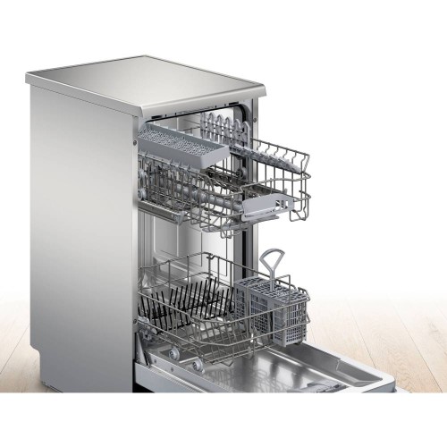 El lavavajillas Bosch SPS2HKI58E es una combinación ideal de funcionalidad, diseño y tecnología avanzada. Gracias a su tamaño y capacidad, puede colocarse en cualquier espacio de tu cocina, garantizando siempre una gran capacidad de lavado, lo que lo hace perfecto para familias medianas o para aquellas que utilizan mucha vajilla al cocinar. Además, cuenta con 6 programas de lavado y funciones que te permiten adaptar cada ciclo a tus necesidades específicas.