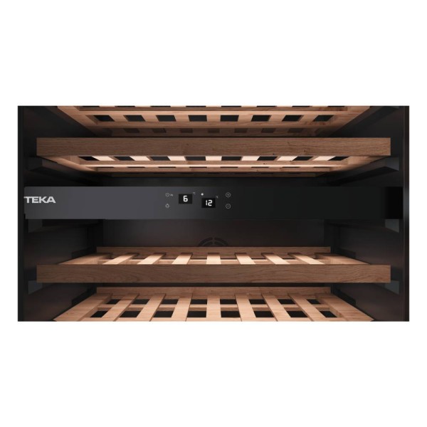 Estantes de madera con guías telescópicas que reducen las vibraciones y mantienen el olor a vino añejo. Su versatilidad permite ajustar la altura de sus estantes para crear espacios para botellas de diferentes tamaños