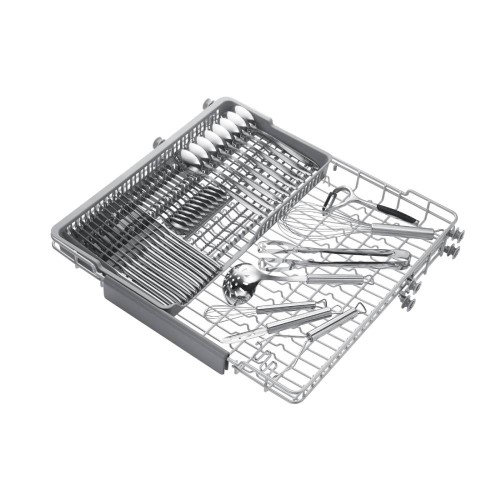 Coloca varios platos, vasos y copas de una manera más fácil y segura. El ángulo de las púas en el estante central ofrece 3 niveles de ajustes que se pueden seleccionar con una palanca. Las púas del estante inferior también se pueden plegar para guardar los utensilios de cocina de mayor tamaño. Por último, hay un soporte para vasos que mantiene asegurados los objetos más frágiles y delicados.