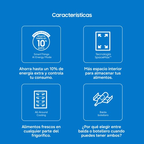 No pierdas el tiempo y energía descongelando el frigorífico. La tecnología No Frost optimiza la circulación del aire para mantener una temperatura constante, evitando la acumulación de escarcha. También enfría mucho más rápido, optimizando el trabajo del sistema de refrigeración y aumentando su durabilidad.