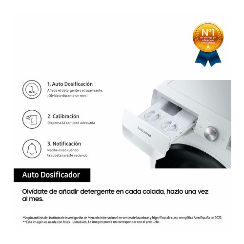 Olvídate de añadir detergente y suavizante en cada colada o de preocuparte si has añadido suficiente. Con el Auto Dosificador tendrás detergente y suavizante para un mes de lavados.