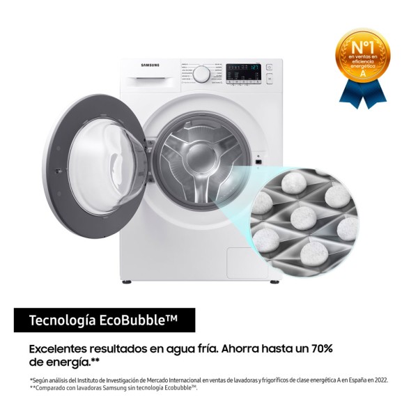 Excelentes resultados en agua fría. El agua con detergente se mezcla con aire antes de entrar en el tambor, generando una capa de burbujas que penetra más rápido en las prendas y las protege de la fricción