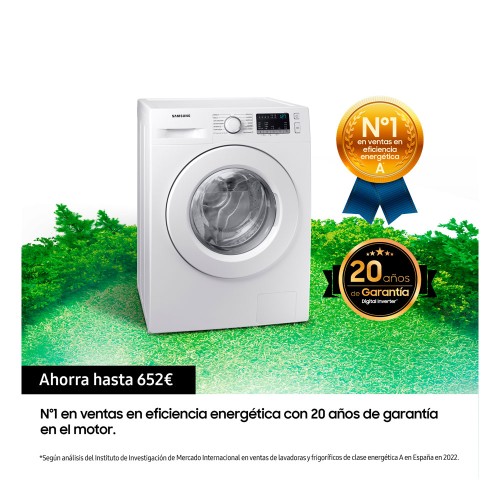 El Motor Digital Inverter de las lavadoras Samsung funciona con imanes, sin usar escobillas, lo que supone menos fricción, ahorro de consumo energético, mayor eficiencia y menos ruido. Esto se traduce en un menor desgaste y permite una mayor vida útil, con 10 años de garantía.