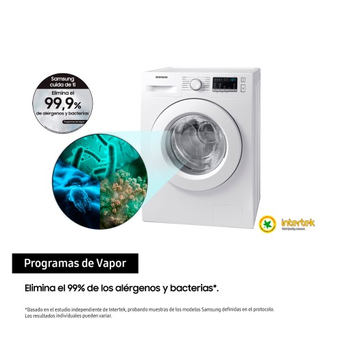 Mantén la puerta y el interior de tu lavadora limpios. El programa de Lavado de Tambor+ elimina la suciedad y el 99,9% de las bacterias causantes del mal olor, sin necesidad de detergentes caros. Además, el agua a presión y un centrifugado rápido eliminan la suciedad alrededor de la junta de la puerta. Si eres de los olvidadizos o no estás acostumbrado a utilizar este programa, las nuevas lavadoras Samsung te notifican cuándo es necesaria una limpieza.