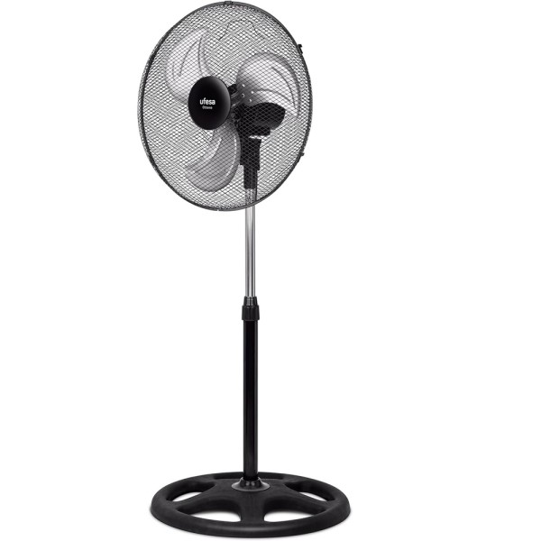 Este ventilador de pie de 70W y 45cm de diámetro dispone de 3 aspas metálicas para que puedas ventilar una estancia de forma rápida.