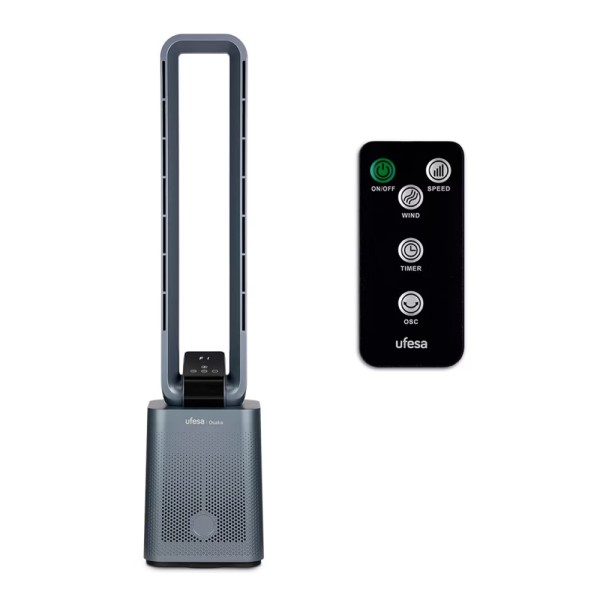 Ajusta la velocidad y la oscilación del ventilador desde la comodidad de tu sofá.