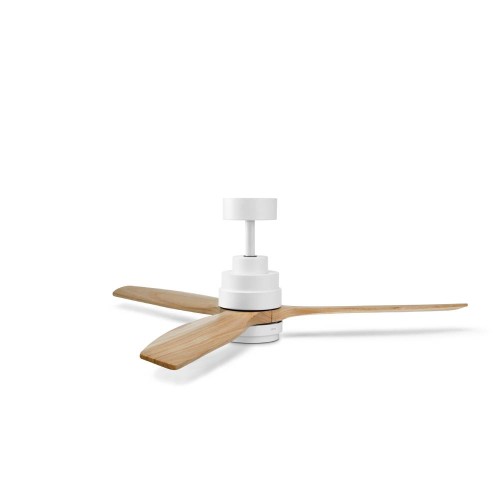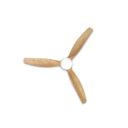 Su diseño es elegante y moderno y cuenta con 3 aspas de madera natural (con un diámetro de 132 cm), que agregan un toque de calidez y elegancia a tu espacio y garantizan una distribución uniforme del aire.