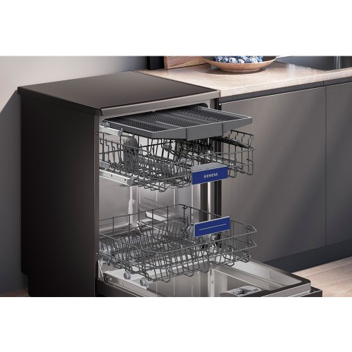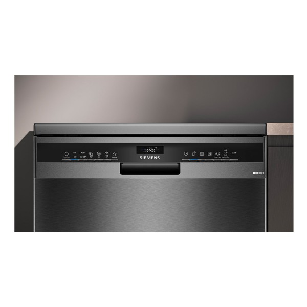 Siemens iQ300 SN23EC03ME. Tipo de instalación: Independiente, Talla del producto: Tamaño completo (60 cm), Color de la puerta: Negro, Acero inoxidable. Número de cubiertos: 14 cubiertos, Clase de emisión de ruido: B, Nivel de ruido: 42 dB. Ajuste de patas: 2 cm, Aplicaciones de control compatibles: Siemens Home Connect. Clase de eficiencia de energía: B, Consumo de agua por ciclo de lavado: 9 L, Consumo de energía por 100 ciclos: 64 kWh. Ancho: 600 mm, Profundidad: 600 mm, Altura: 845 mm