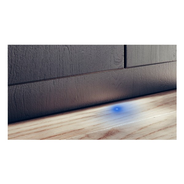 Punto de luz que se proyecta en el suelo mientras el lavavajillas está en funcionamiento.