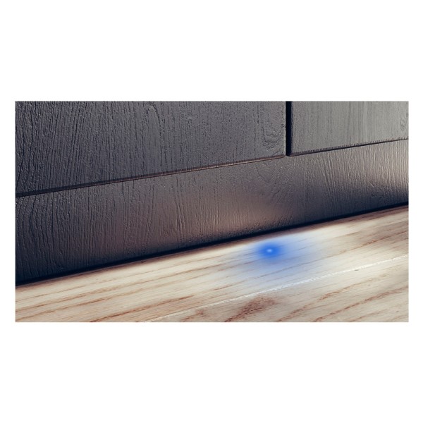 Punto de luz que se proyecta en el suelo mientras el lavavajillas está en funcionamiento.