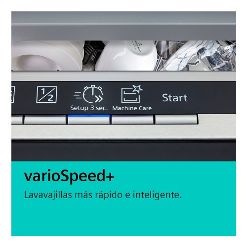 Con la función varioSpeed+, puedes lavar y secar los platos hasta tres veces más rápido, pero obteniendo los mismos resultados excelentes. Activa y controla este modo turbo desde la aplicación Home Connect en cualquier momento, incluso cuando se haya iniciado el ciclo de aclarado.