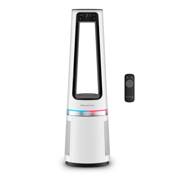 - Purifica, calienta y refresca - Purificador de aire, ventilador y calefactor 3 en 1, para un ambiente limpio y agradable durante todo el año - Captura hasta el 99,9 % del virus H1N1* y hasta el 99,95 %** de las partículas pequeñas (de hasta 0,1 micra), como los ácaros del polvo, los alérgenos o las bacterias - Calefactor rápido y seguro, gracias a su tecnología cerámica (2100 W) y a su función de apagado automático para evitar el sobrecalentamiento - Ventilador de torre que proporciona un frescor intenso, con una velocidad (2,2 m/s) y un flujo de aire (358 l/s) muy potentes y un alcance de hasta 8 m - Excepcionalmente silencioso, ya que el ventilador solo emite 31 dB(A) en posición mínima y 49 dB(A) en modo calefacción - Modos de día y de noche con control termostático integrado para ajustar automáticamente la potencia a las necesidades de cada momento - Función de oscilación múltiple (0°- 30°- 60°- 90°) para una difusión perfecta del aire, además de iluminación ambiental opcional
