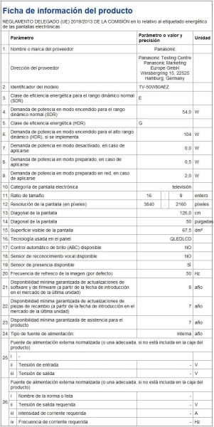 | Tamaño pantalla | 127 cm - 50" |