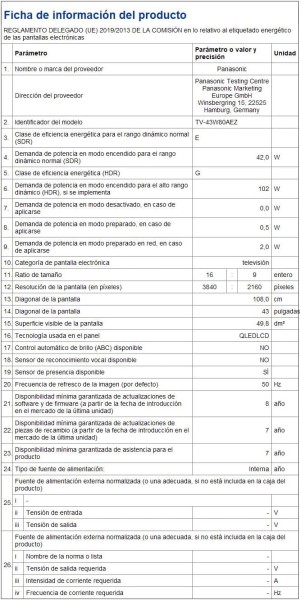 | Tamaño pantalla | 109,22 cm - 43" |